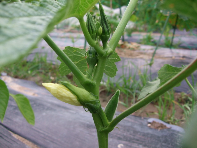 先日花が咲いたなと思ったらもうオクラらしき実がなっていた 早い